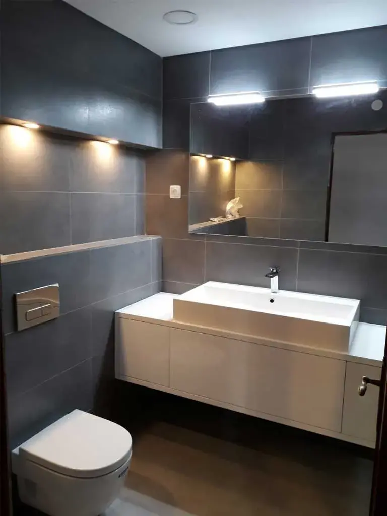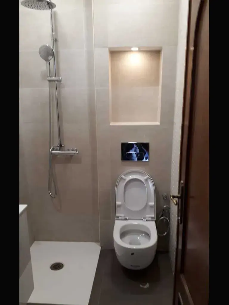 Local: Carnaxide – Lisboa, duração da obra 5 dias, remodelação de 2 casas de banho, sanita suspensa, duche de encastrar e com nicho na parede dando um ar moderno para casa de banho