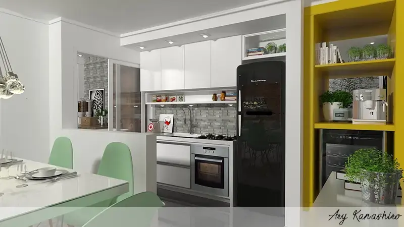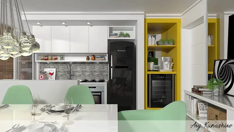 Uma cozinha colorida pode ser um ponto de destaque em qualquer casa. Utilizar um design que mistura diferentes cores pode trazer vida e personalidade ao ambiente. Para isso, é importante ter um bom planejamento e escolher cores que combinem entre si e com o restante da decoração. Uma opção é utilizar uma cor mais neutra para a maior parte dos móveis e revestimentos, e incluir pontos de cores vibrantes em detalhes como puxadores, luminárias e utensílios de cozinha. Outra ideia é escolher cores complementares para a parede, bancada e armários, criando um efeito de contraste interessante. O importante é lembrar que as cores escolhidas devem refletir a personalidade e o estilo de quem vive na casa, criando um ambiente agradável e acolhedor.