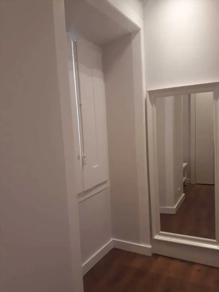 Remodelação de apartamento com estrutura de tabica, quarto totalmente replanejado com módulos de roupeiros encastrados.