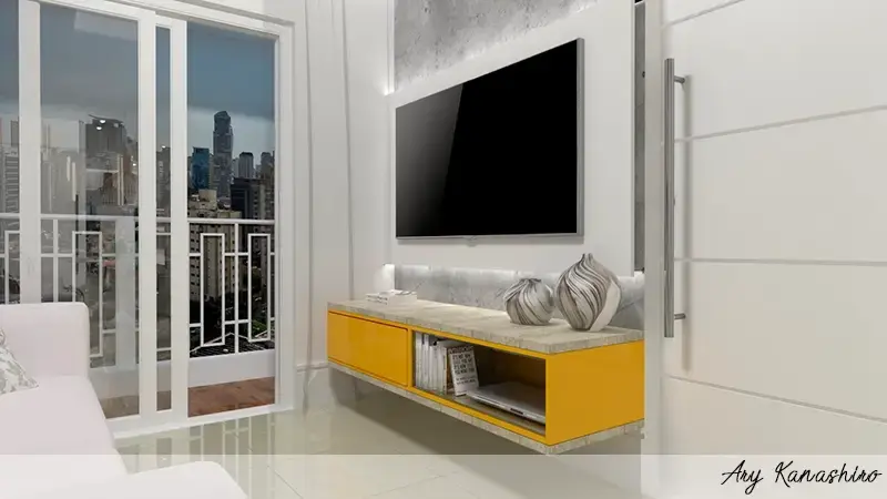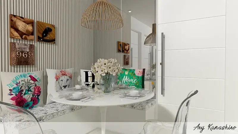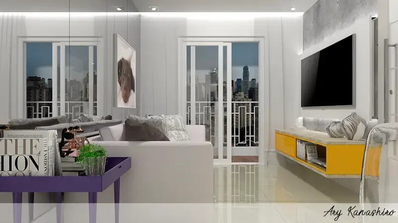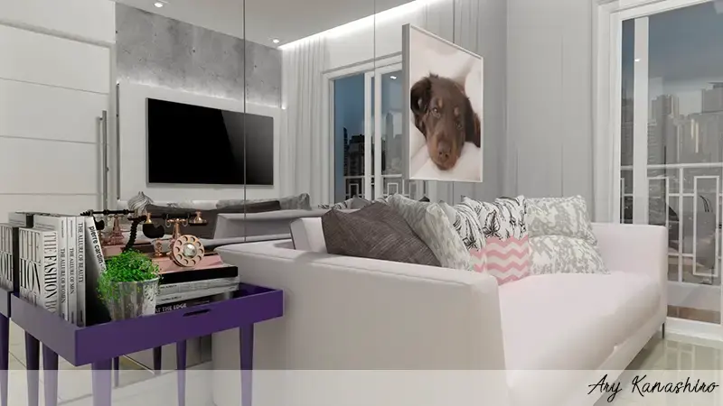 Lindos quadros não só ocupam paredes, em novas tendências eles vêm do chão ao teto e muitas vezes apoiado ao móvel.